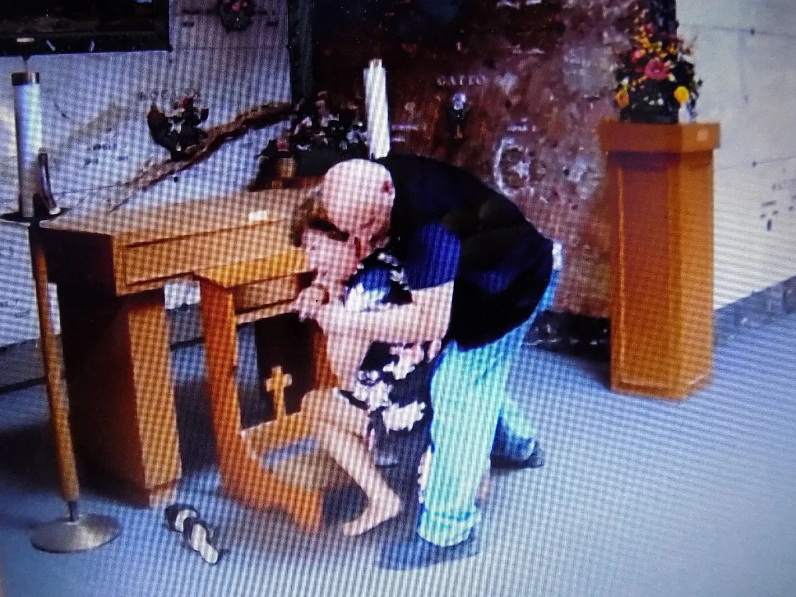 Behind the seen of We Want You Dead Mindy gets Attacked by Rob playing the Gate Keeper Zombie in the Mausoleum.